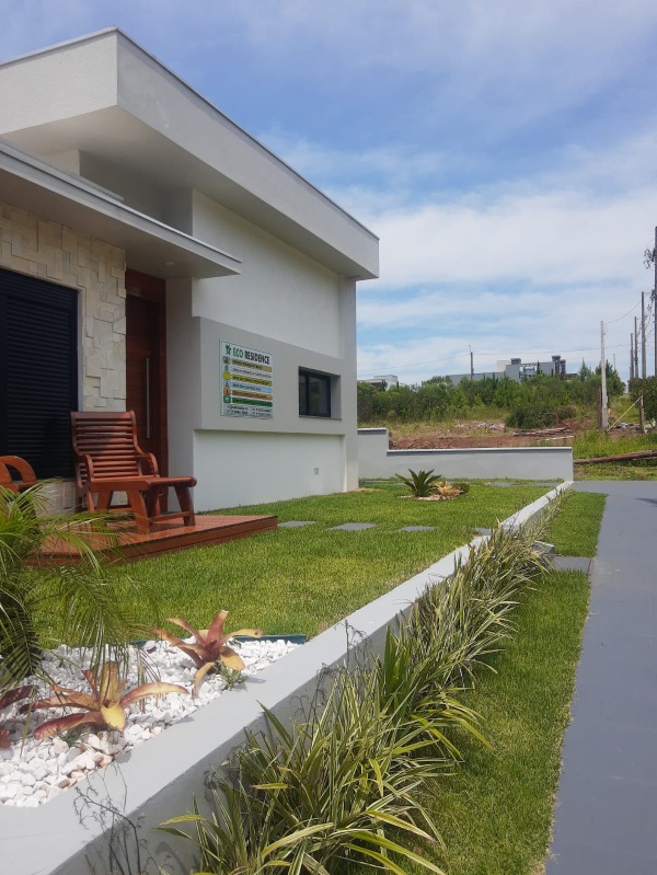 Casas contemporâneas, com design moderno, cada uma contando com 3 dormitórios, suíte, cozinha, estar e jantar integrados. Área de serviço, banheiro social, lareira na sala, churrasqueira e local para estacionar.