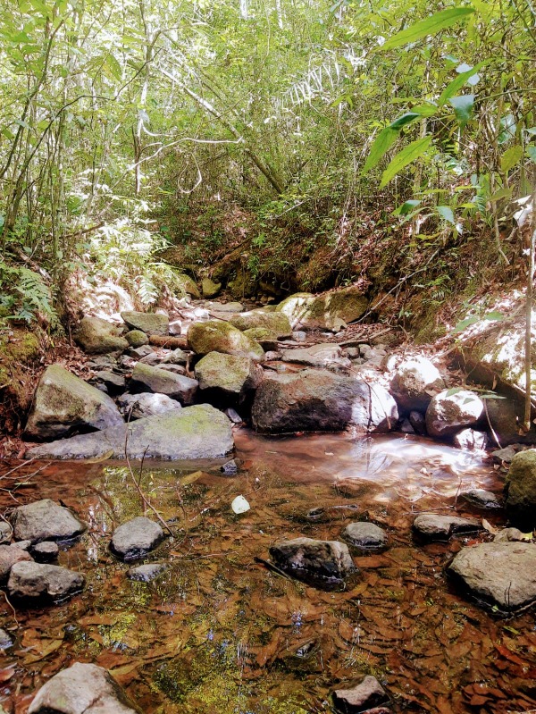 Riacho passando sobre o terreno, mata preservada, roça produzindo, diversidade de frutíferas, água de poço e encanada.