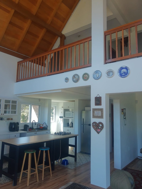 Excelente casa para moradia, nova, composta por 2 dormitórios, 2 banheiros, sala de estar, jantar, cozinha, mezanino com escritório e ante sala. Duas sacadas, água quente, lareira, iluminação natural e ambientes bem arejados. Alarme e sistema de vídeo monitoramento.