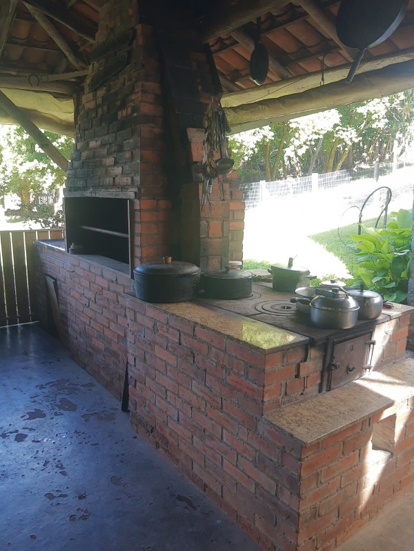 Além do terreno, que conta com ótimo aproveitamento, a chácara conta com uma casa antiga de 4 dormitórios, bem ampla e bem conservada. Outra residência de alvenaria com 2 dormitórios e demais dependências, quiosque grande com churrasqueira e fogão campeiro. Galpão com estrebaria e chiqueiro, salão de festas rústico e anexo com churrasqueira. Dois poços artesianos, açude, vertente, acesso por 2 estradas sendo uma delas asfaltada.